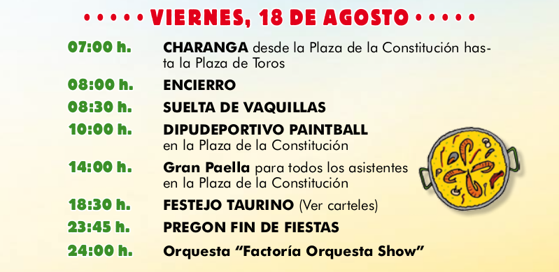 - 14:00. Gran Paella para todos los asistentes en la Plaza de la Constitución